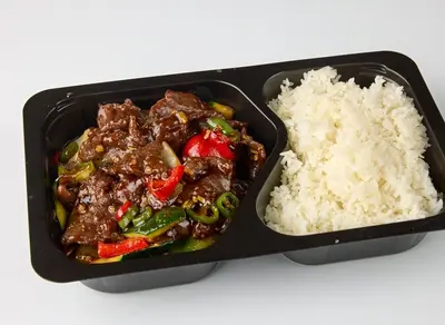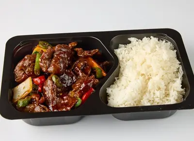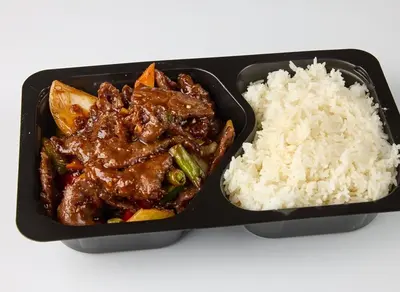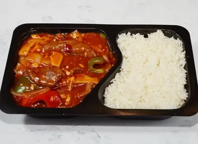 Herkullinen pääruoka, jossa on mehukasta naudanlihaa maukkaassa Thai-chilikastikkeessa.