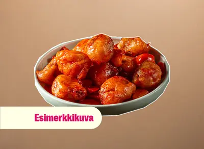 Friteerattua kanaa maustettuna hapanilmeläkastikkeella