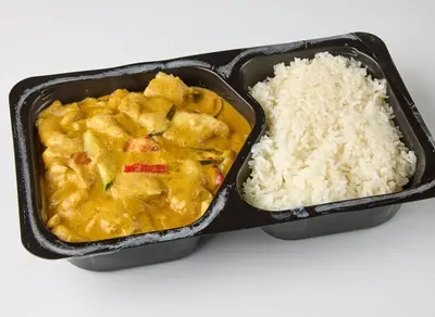 Keltaisessa currykookosmaitokastikkeessa