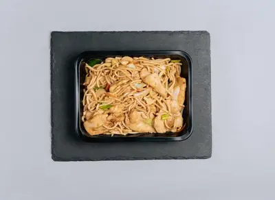 Paistettua nuudelia ja kanaa Pääruoka