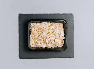 Paistettua riisiä, kanaa, porsaanlihaa, katkarapua Pääruoka