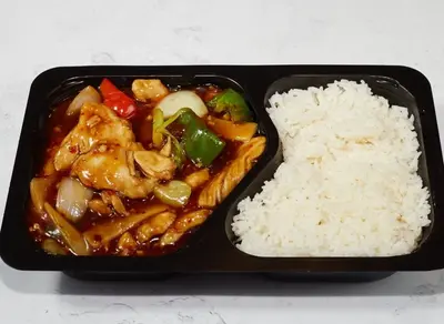 Herkullinen ja mausteinen pääruoka, jossa on kanaa maukkaassa Thai-chilikastikkeessa.